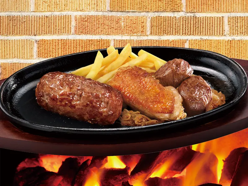 ハンバーグ150g+チキンステーキ100g+カットステーキ90g