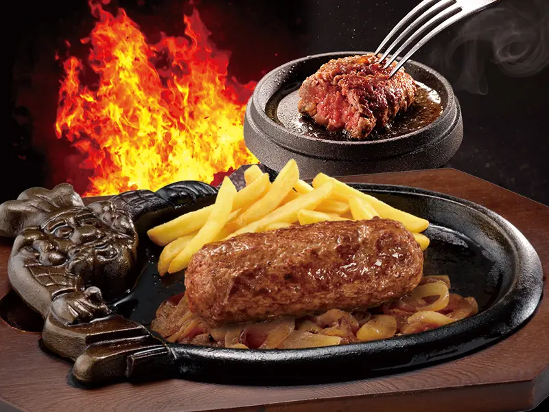 単品 1,628円/ブロンコセット付 2,486円◆ブロンコおじさんのこだわり炭焼きがんこハンバーグ&カットステーキ